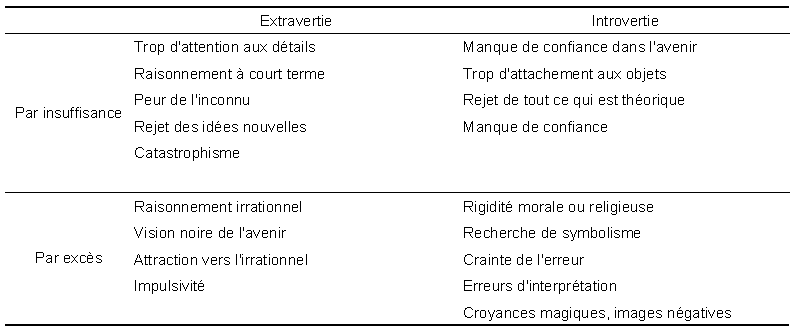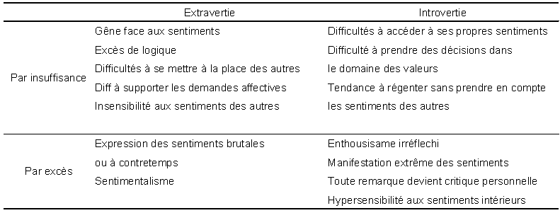 Par voie de conséquence, l'Inférieure est la fonction dans laquelle nous sommes les plus mal habiles. C'est donc la fonction dont l'exercice lent et mal maîtrisé peut nous attirer des ennuis, en particulier dans nos relations avec autrui. Elle est aussi très susceptible, et peut donc générer de violentes réactions émotionnelles.