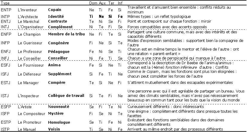 MBTI ® et MYERS-BRIGGS TYPE INDICATOR ® sont des marques déposées et MYERS-BRIGGS™ est une marque de Consulting Psychologists Press, Inc., l'éditeur du matériel MBTI. OPP ® en détient les droits pour l'Europe. Ce site est un site personnel indépendant et à but non lucratif visant à promouvoir le modèle ; il n'est affilié à aucune entreprise. Les sources figurent dans la page Liens.